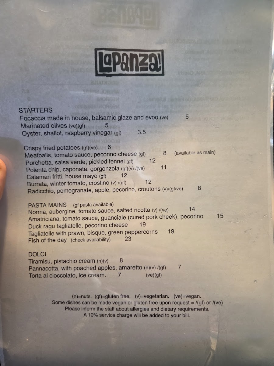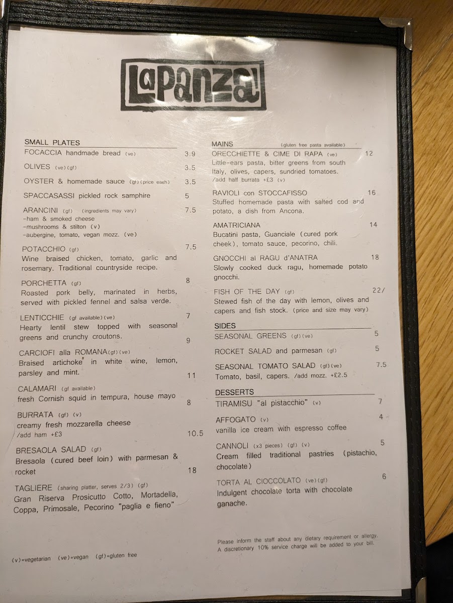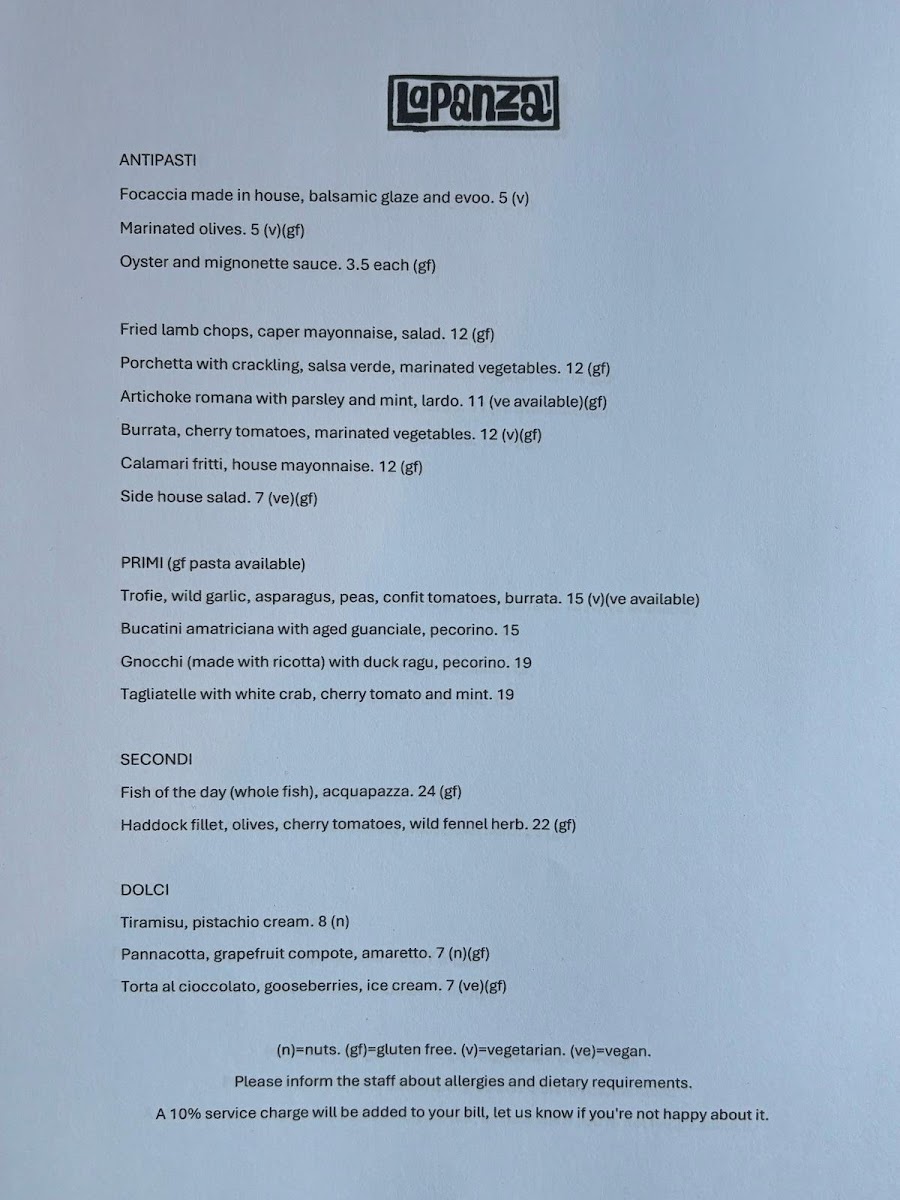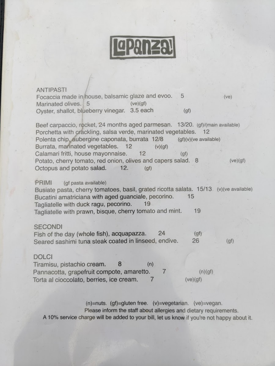 La Panza Menu