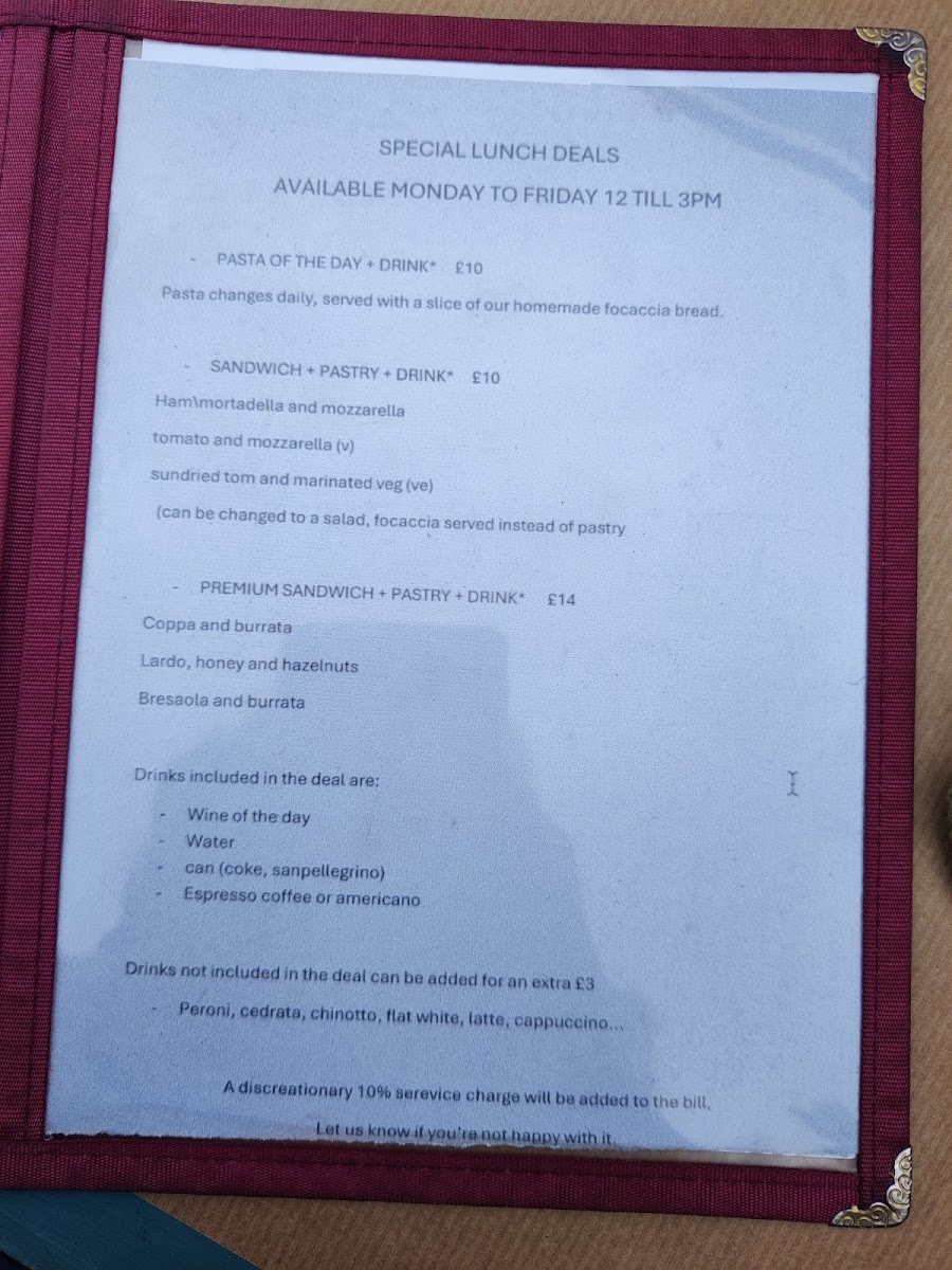 The menu showcases well-crafted pastas like Bucatini Amatriciana and Duck Ragu Gnocchi alongside fresh seafood options such as Stone Bass and Octopus, creating a balanced selection for varied tastes. Sharing plates like Charcuterie, Antipasti Burrata Focaccia, and Arancini invite a convivial atmosphere perfect for enjoying with a glass of wine. For those finishing on a sweet note, desserts like Pistachio Tiramisu and Affogato provide a subtle finish that complements the meal’s overall depth.